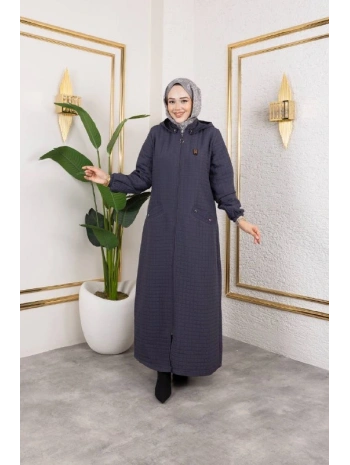 Kapüşonlu Kapitone Mont / Gri-M104
