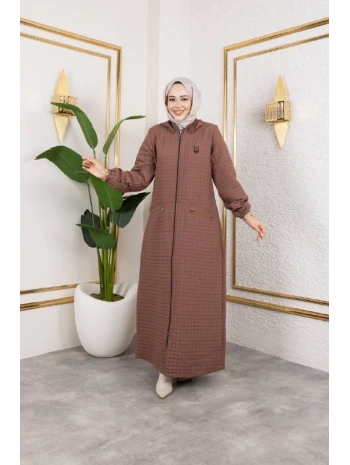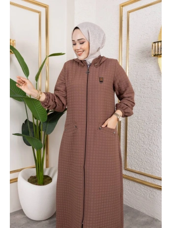 Kapüşonlu Kapitone Mont / Kahve-M104