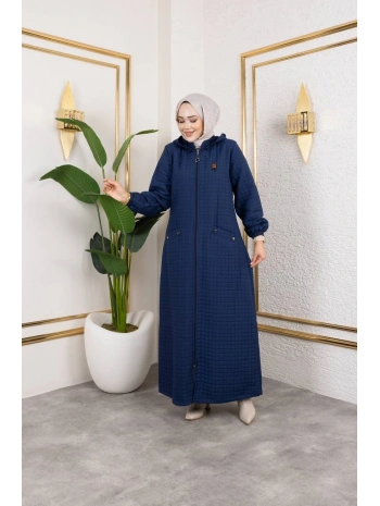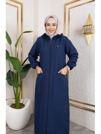 Kapüşonlu Kapitone Mont / Lacivert-M104