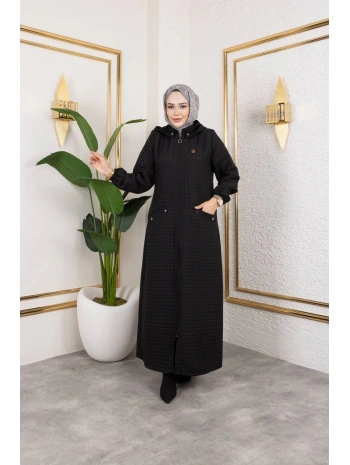 Şönil Kumaş Kışlık Comfort Ferace / Siyah - F0501