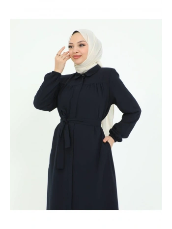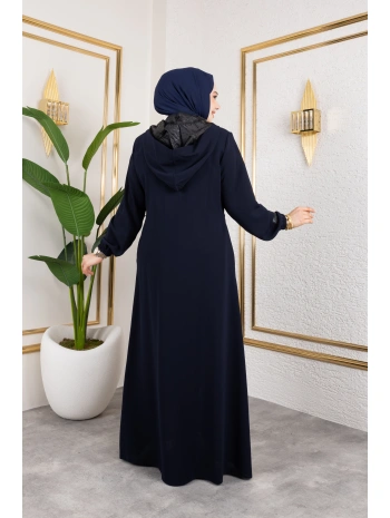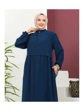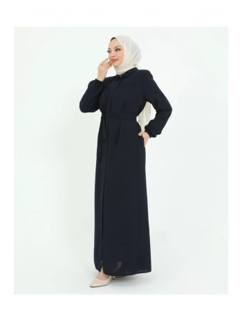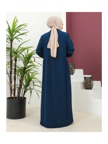 Göğüs Büzgülü Tam Boy Ferace -Lacivert