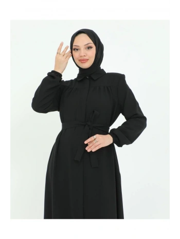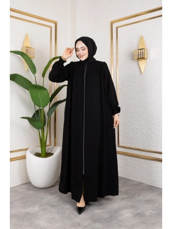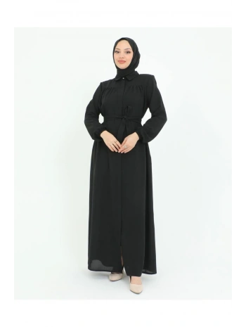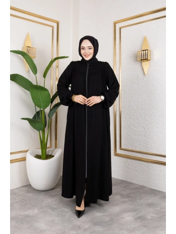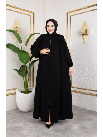Göğüs Büzgülü Tam Boy Ferace -Siyah