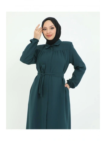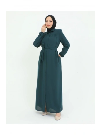 Göğüs Büzgülü Tam Boy Ferace -Zümrüt