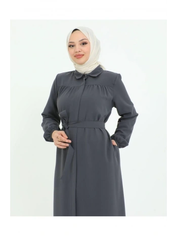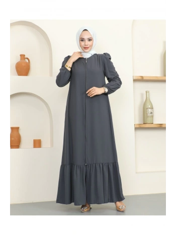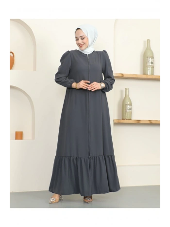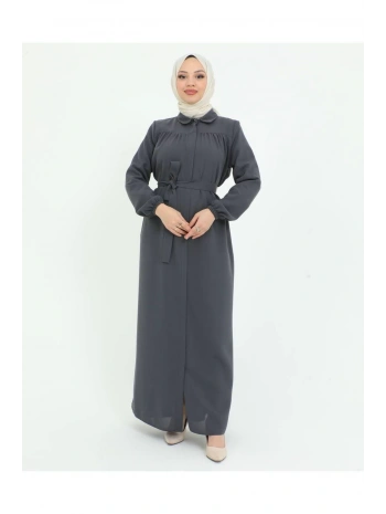 Göğüs Büzgülü Tam Boy Ferace -Antrasit