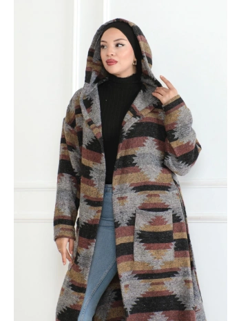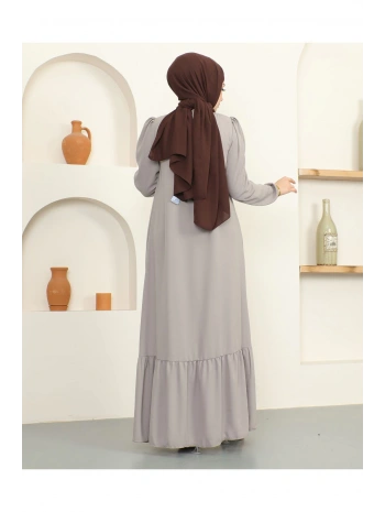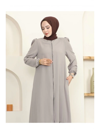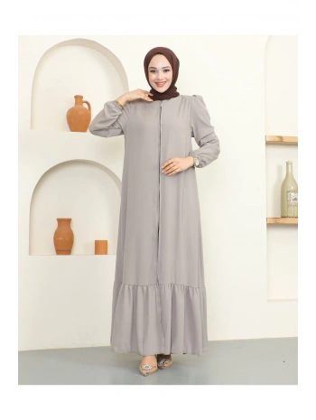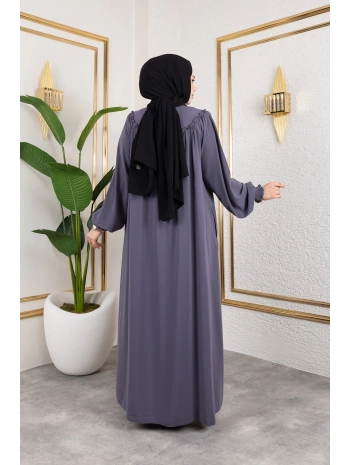 Robalı Medine İpeği Kumaş Rahat/Salaş Kesim Ferace - Gri / F142