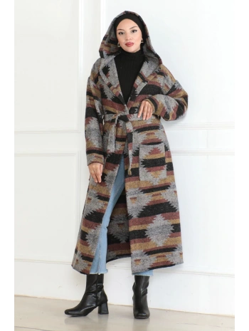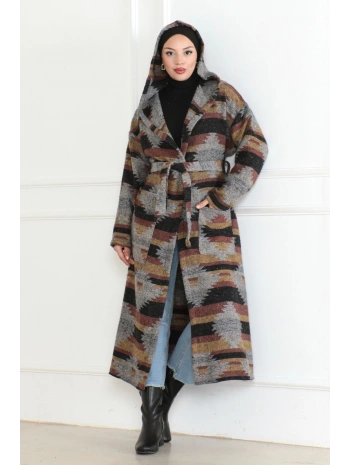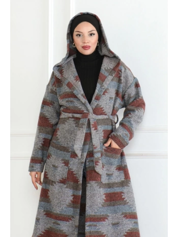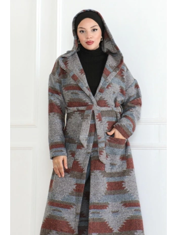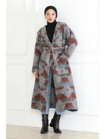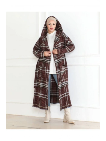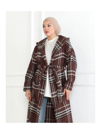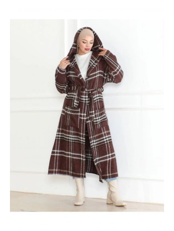 Winter Desen Oduncu Kuşaklı Kap / Bordo - F0505