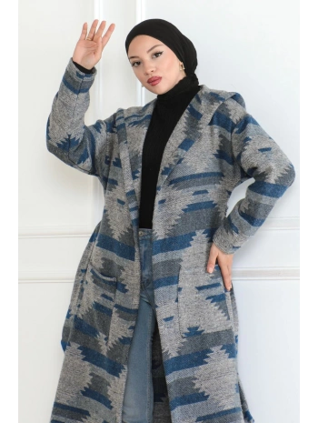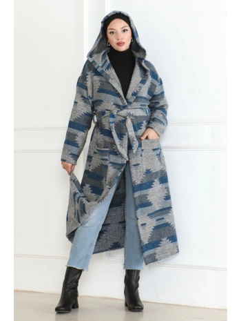 Winter Desen Oduncu Kuşaklı Kap / Lacivert - F0505