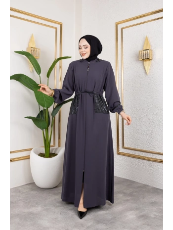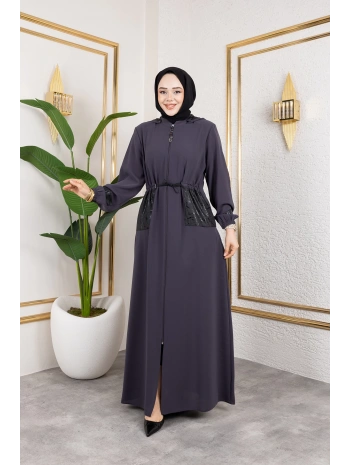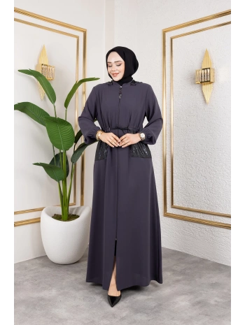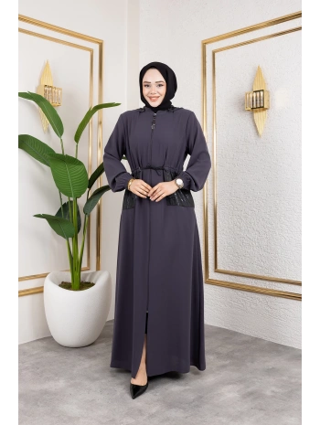 Cep Detaylı Bağlamalı Ferace - Antrasit / F0138
