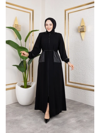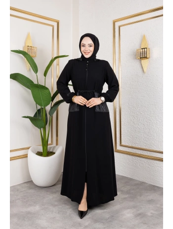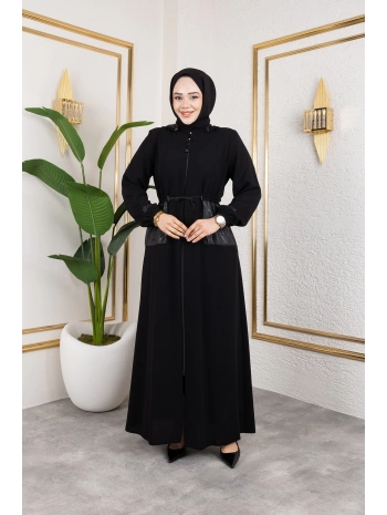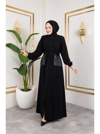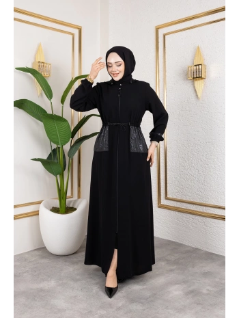 Cep Detaylı Bağlamalı Ferace - Siyah / F0138