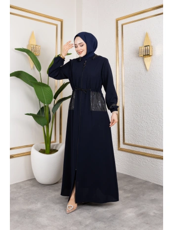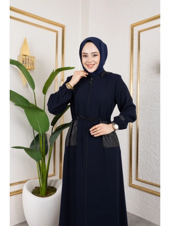 Cep Detaylı Bağlamalı Ferace - Lacivert / F0138