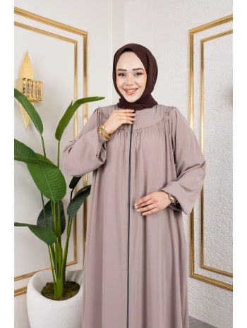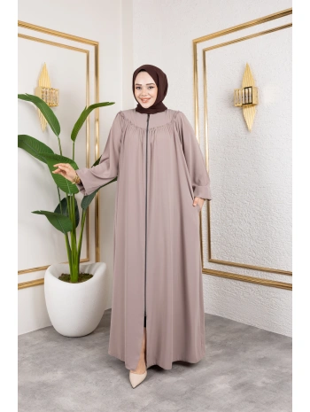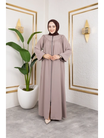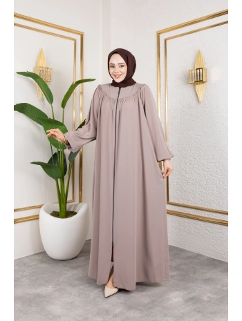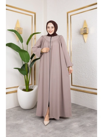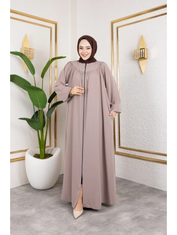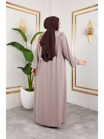 Krep Kumaş Tesettür Ferace / F0134 - Bej