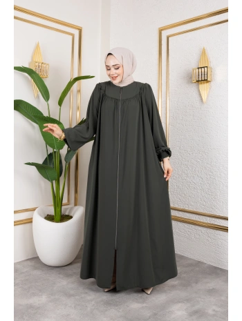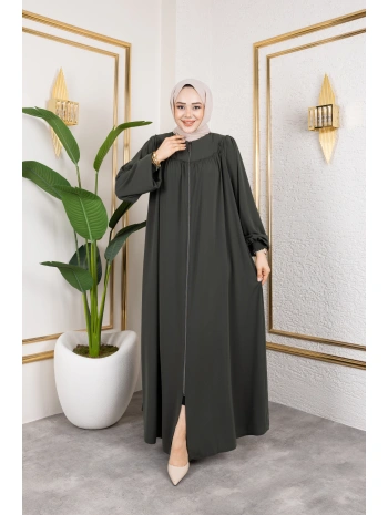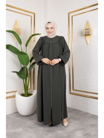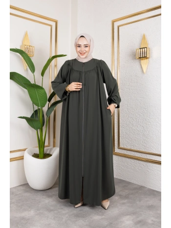 Robalı Medine İpeği Kumaş Rahat/Salaş Kesim Ferace - Haki / F142