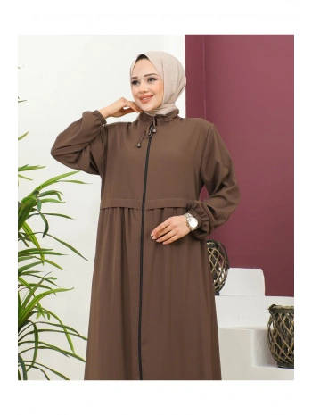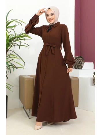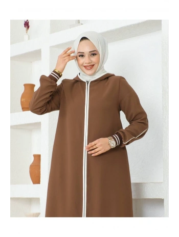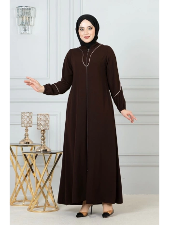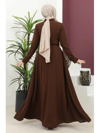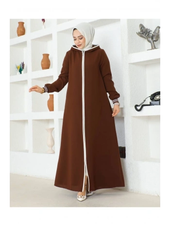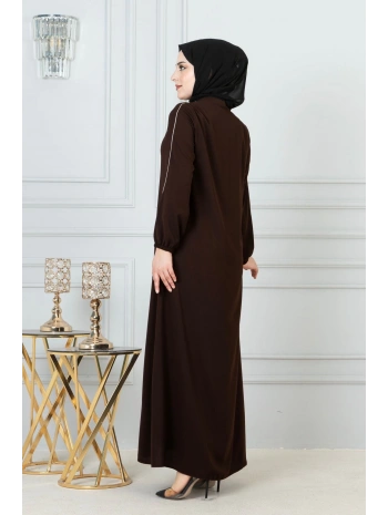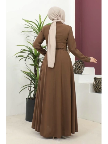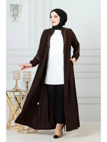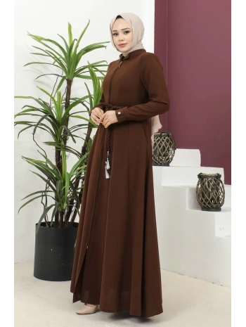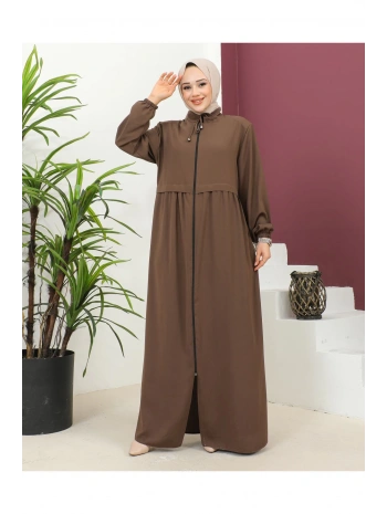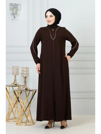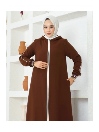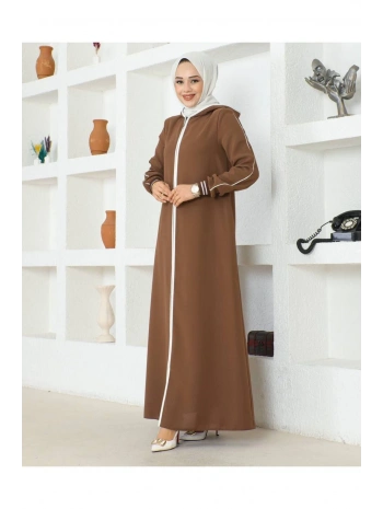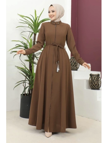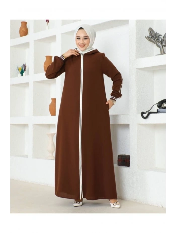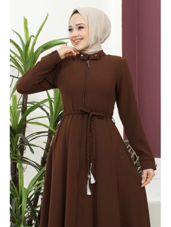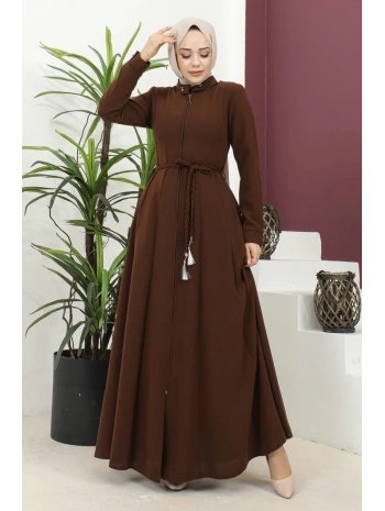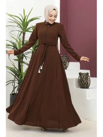 Burgu Kemerli Dokuma Kumaş Mevsimlik Mevlana Ferace - Kahverengi / F0131