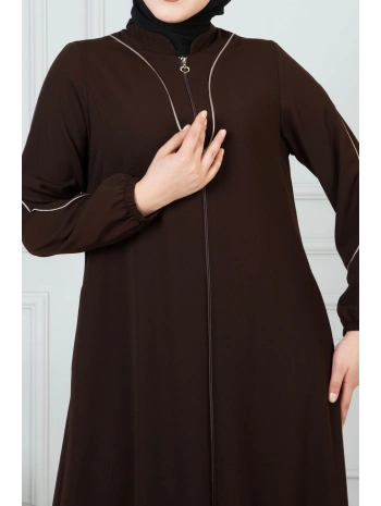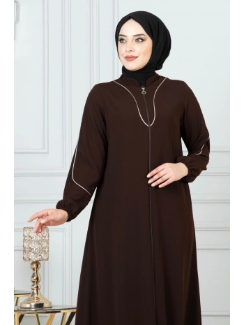 Biyeli Ribana Detaylı Ferace - Kahve / F0128