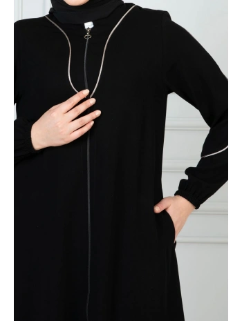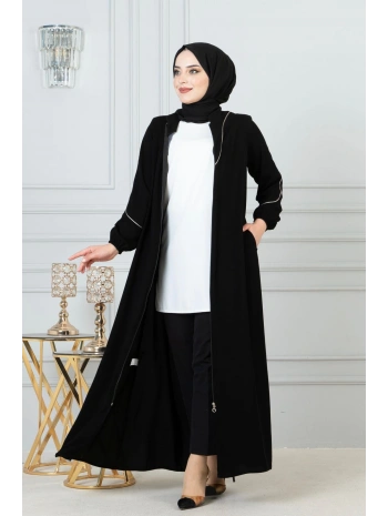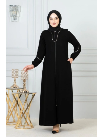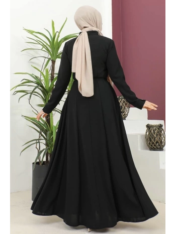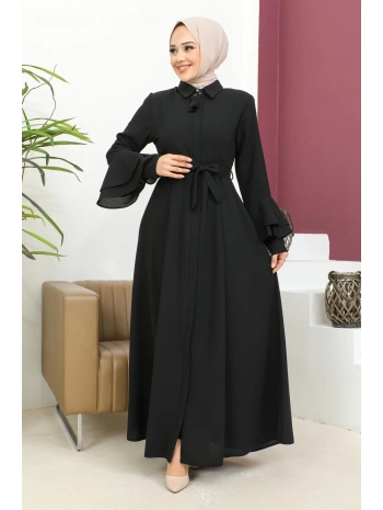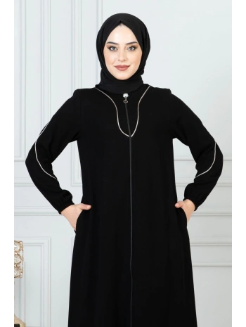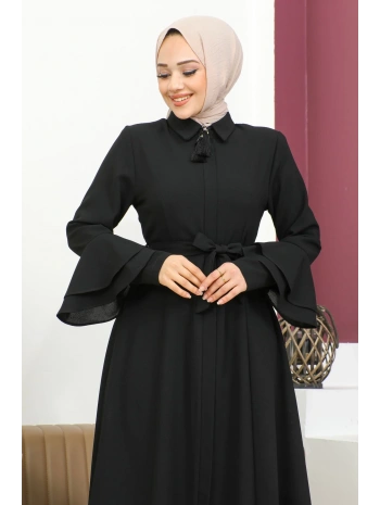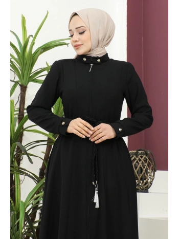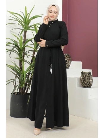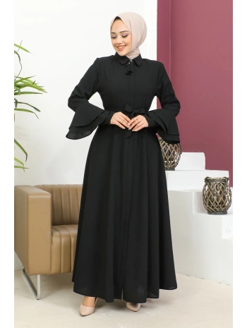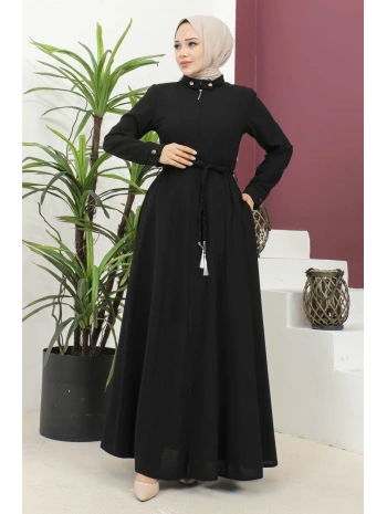 Burgu Kemerli Dokuma Kumaş Mevsimlik Mevlana Ferace - Siyah / F0131