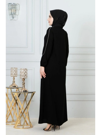 Beyaz Biye Detaylı Ferace - Siyah