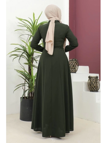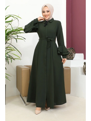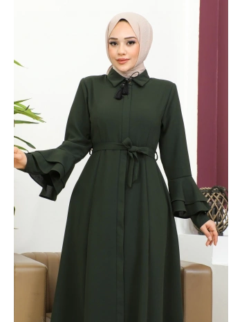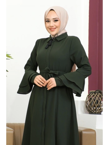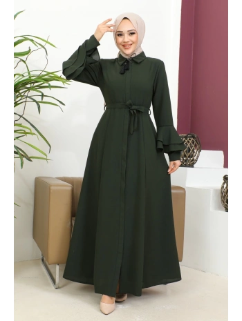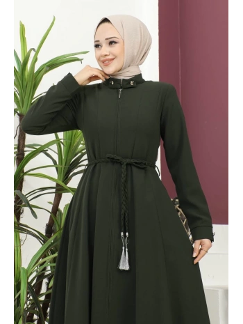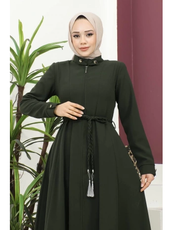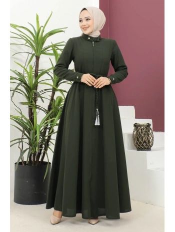 Burgu Kemerli Dokuma Kumaş Mevsimlik Mevlana Ferace - Haki / F0131