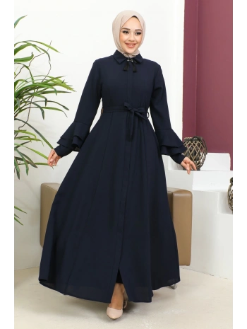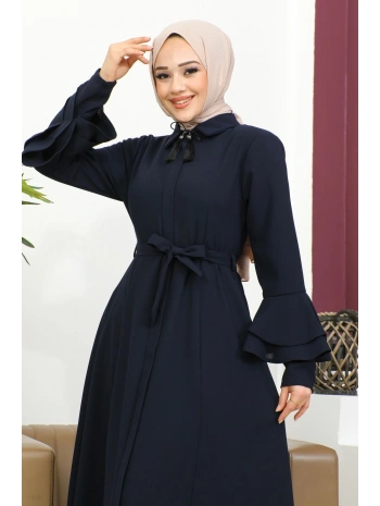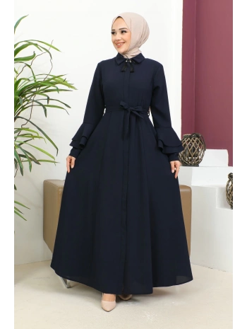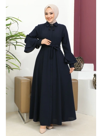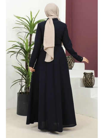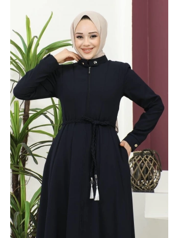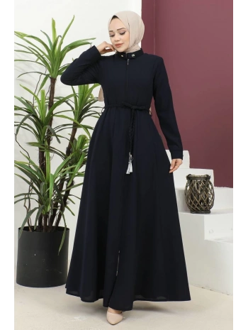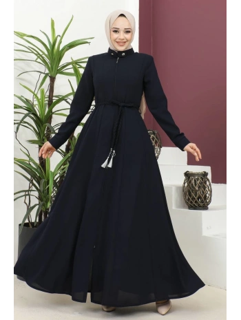 Burgu Kemerli Dokuma Kumaş Mevsimlik Mevlana Ferace - Lacivert / F0131