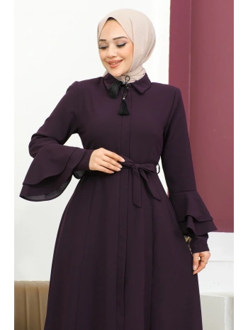 Kolu Kat Katlı Hakim Yaka Ferace - Mürdüm / F0130