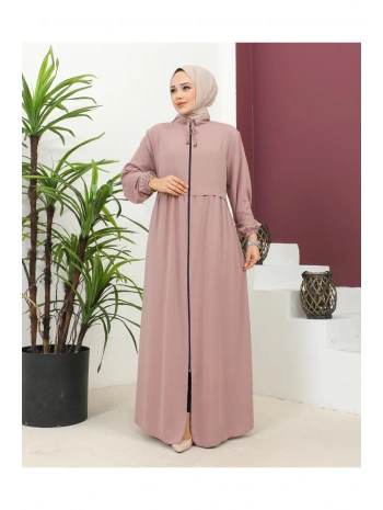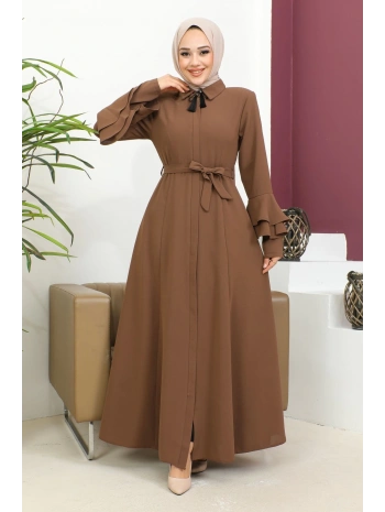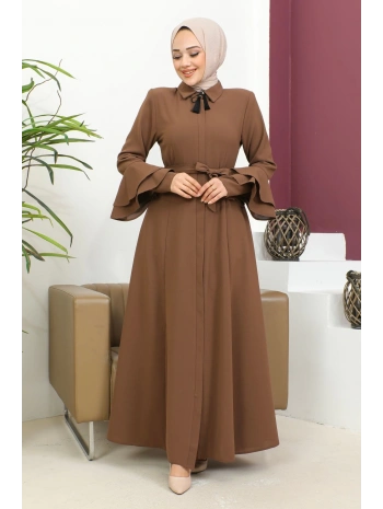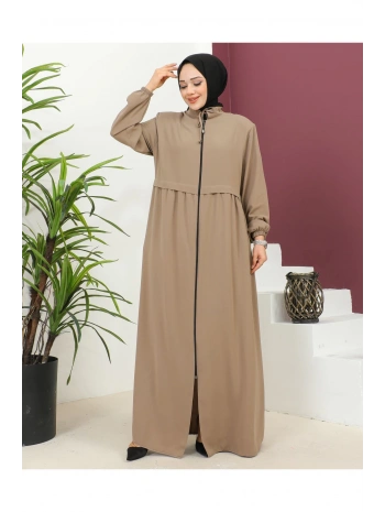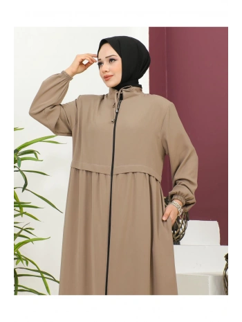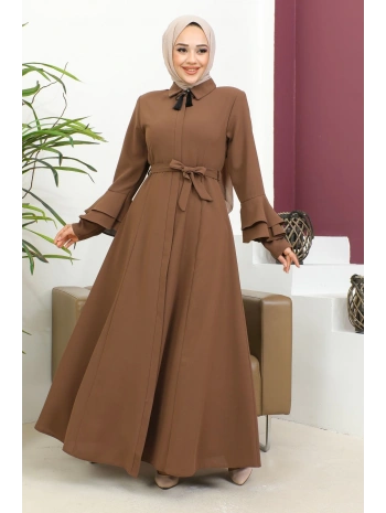 Biyeli Ribana Detaylı Ferace - Taba / F0128
