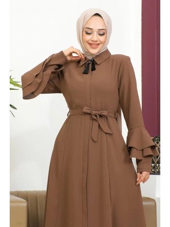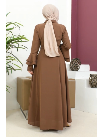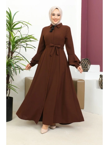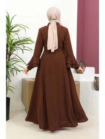 Kolu Kat Katlı Hakim Yaka Ferace - Kahve / F0130