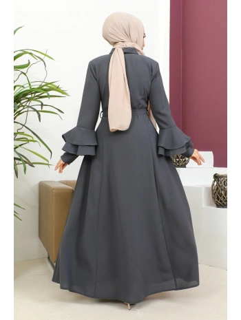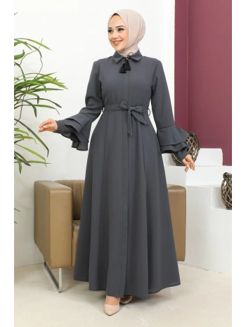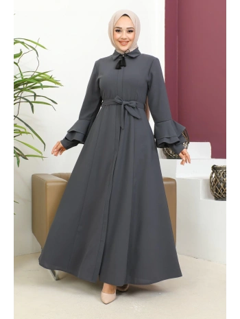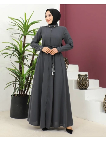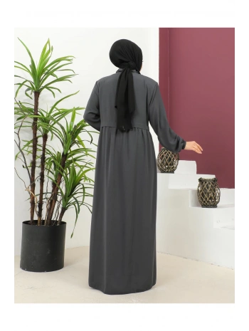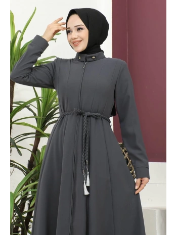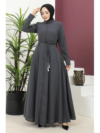 Burgu Kemerli Dokuma Kumaş Mevsimlik Mevlana Ferace - Antrasit / F0131