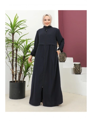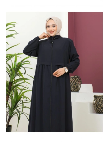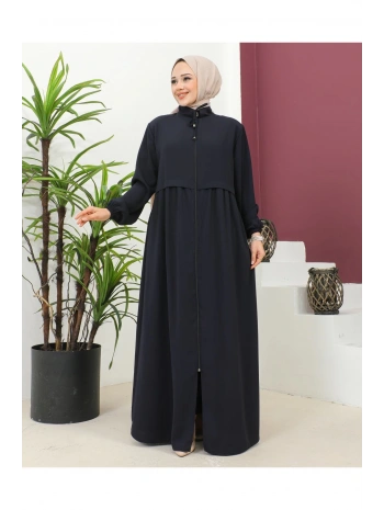 Büyük Beden Krep Ferace -Lacivert