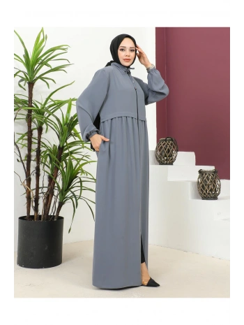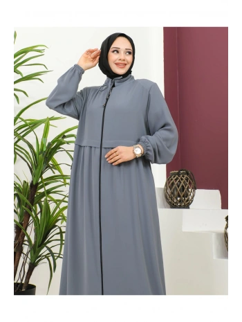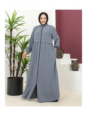 Büyük Beden Krep Ferace -Gri