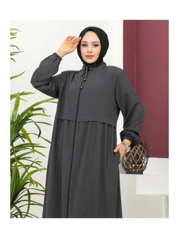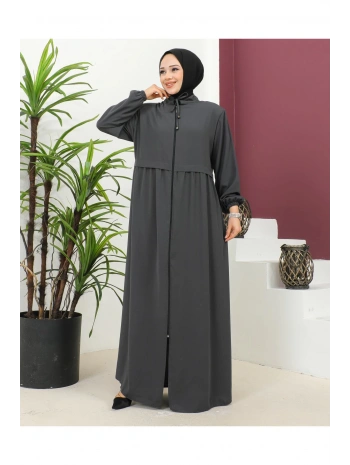 Büyük Beden Krep Ferace -Antrasit