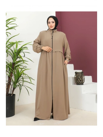 Büyük Beden Krep Ferace -Bej