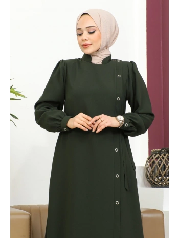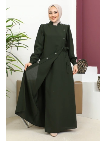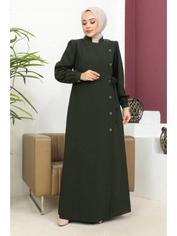 Bağlamalı Çıt Çıt Detaylı Ferace - Haki
