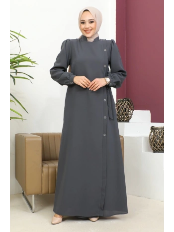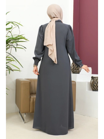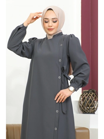 Bağlamalı Çıt Çıt Detaylı Ferace - Antrasit