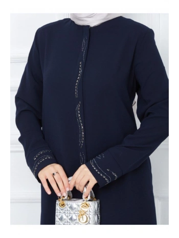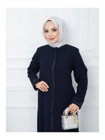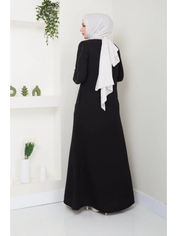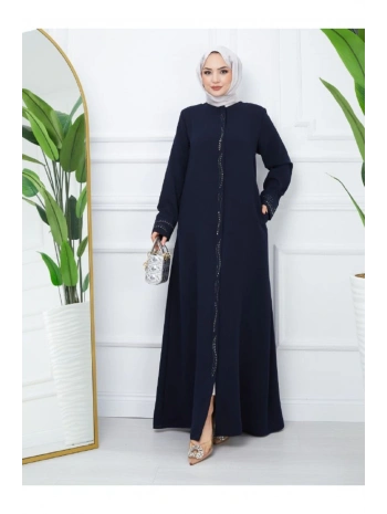 Ön Ve Kol Taşlı Büyük Beden Ferace