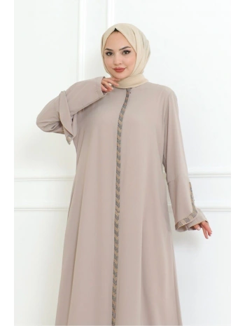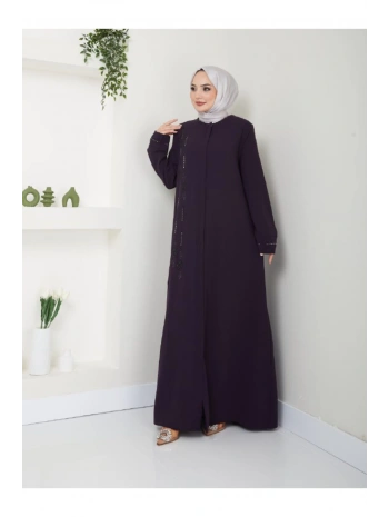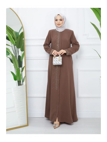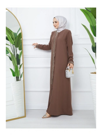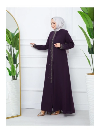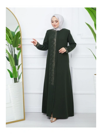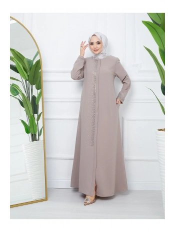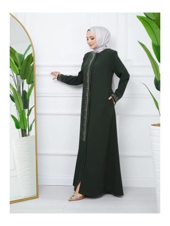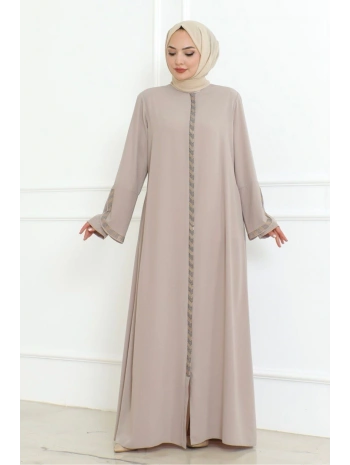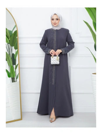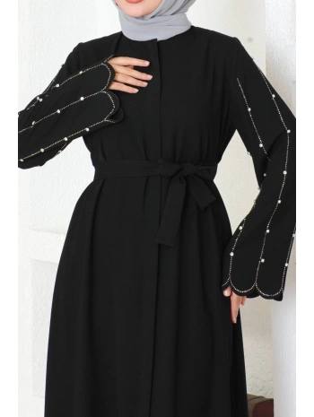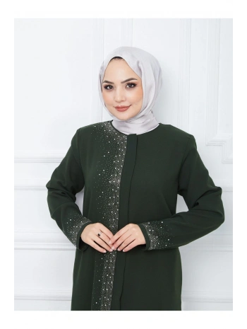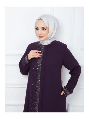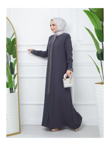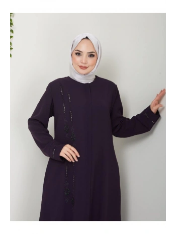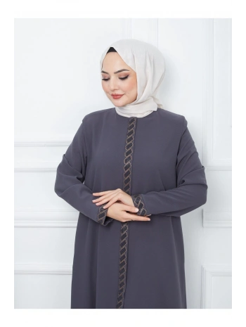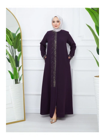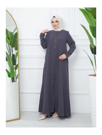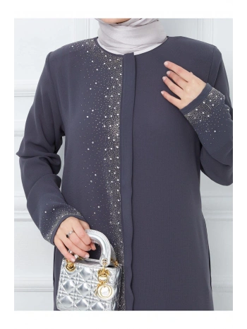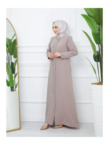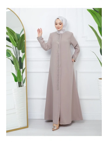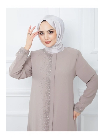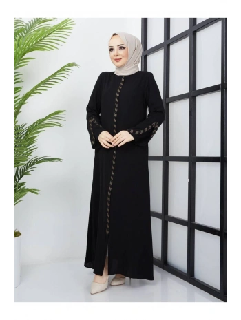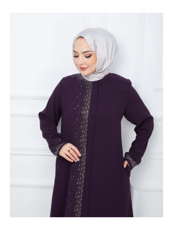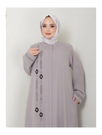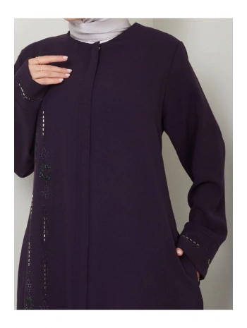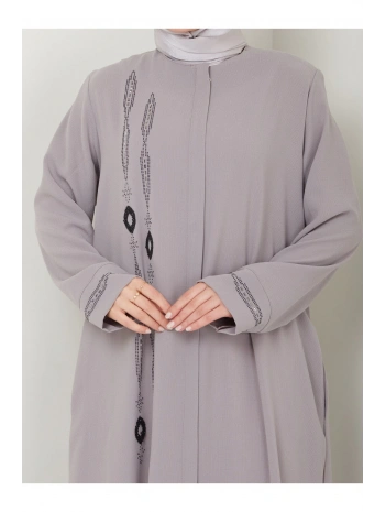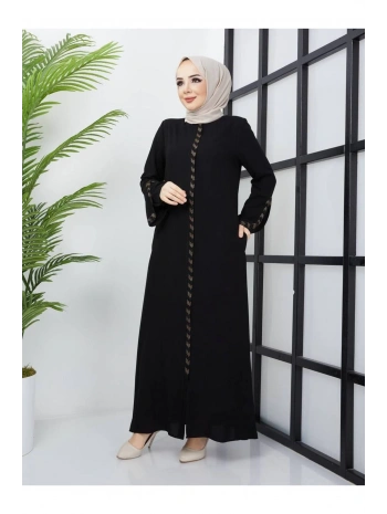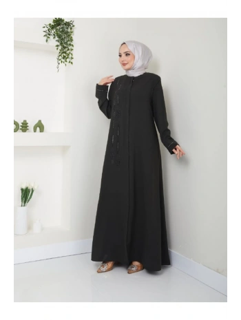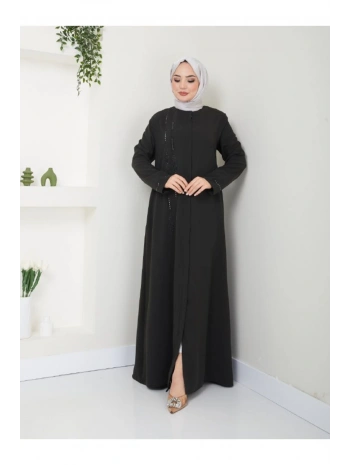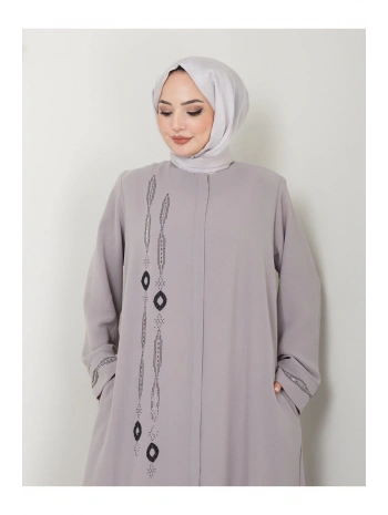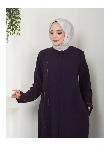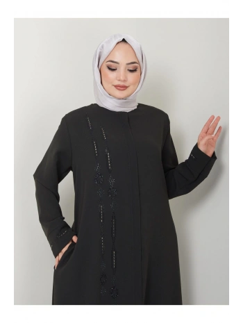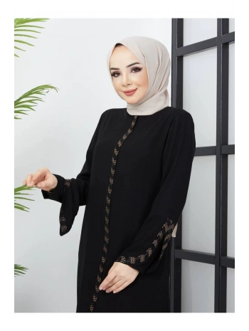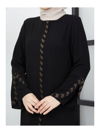 Ön Ve Kol Taş Detaylı Büyük Beden Ferace