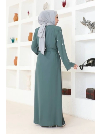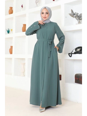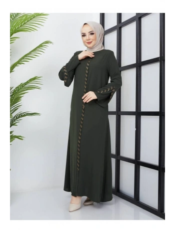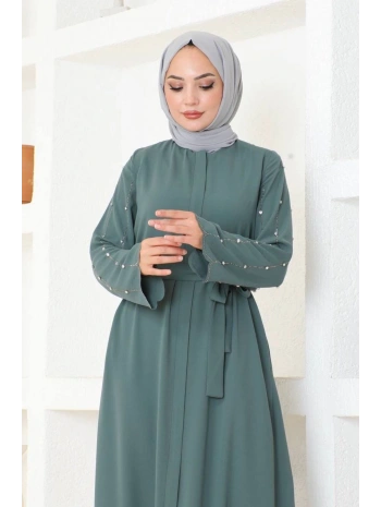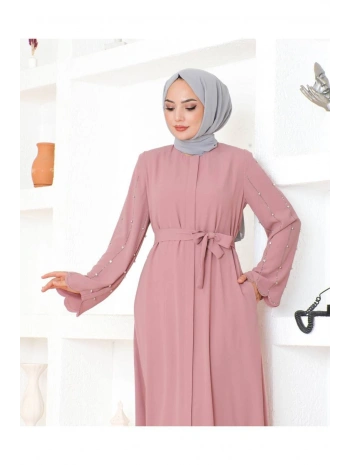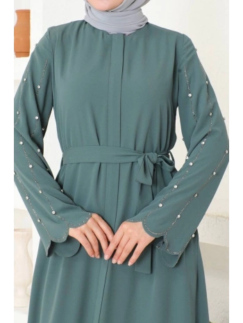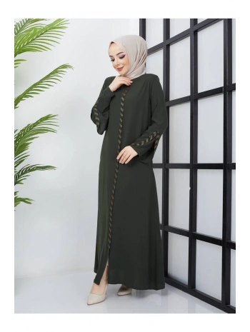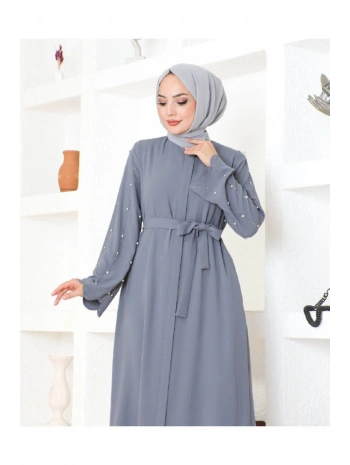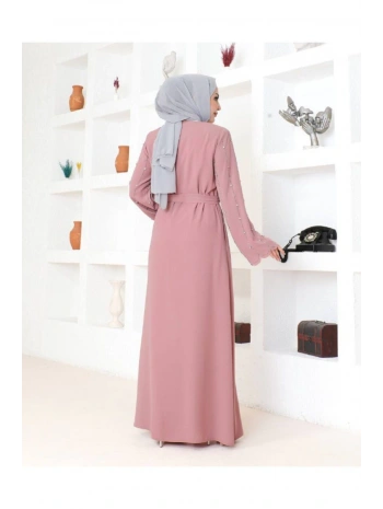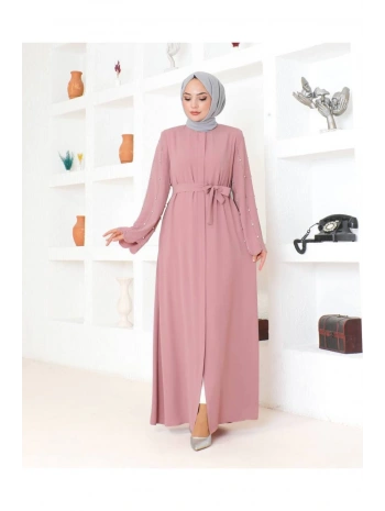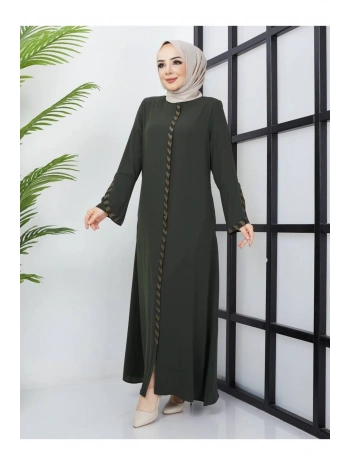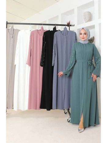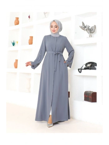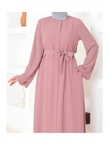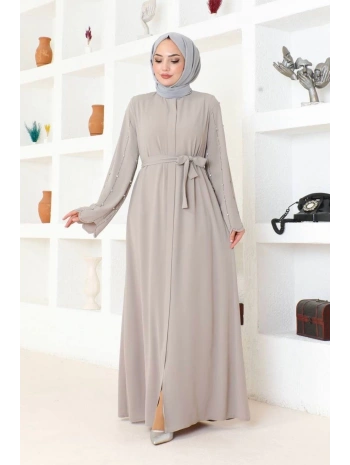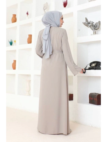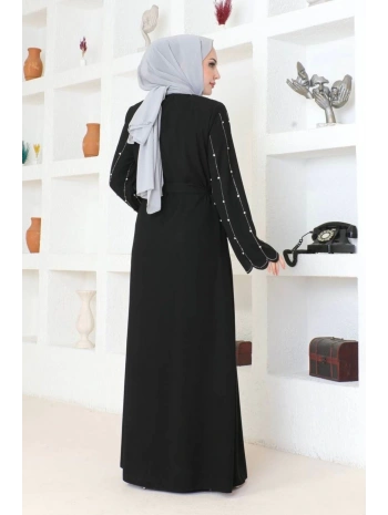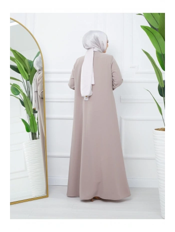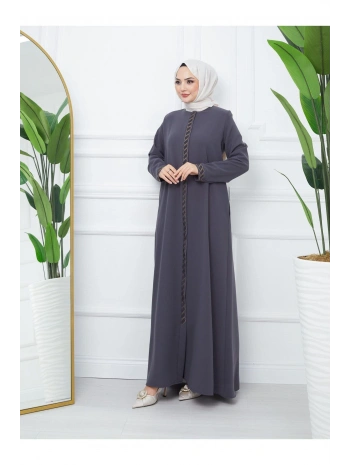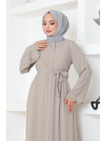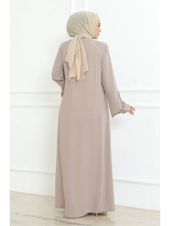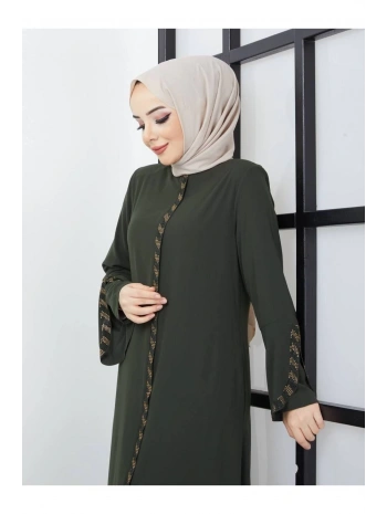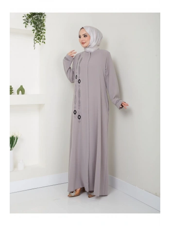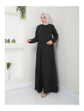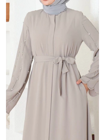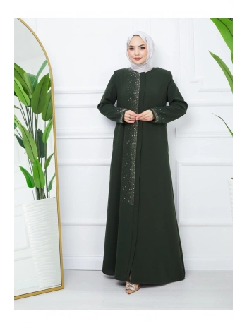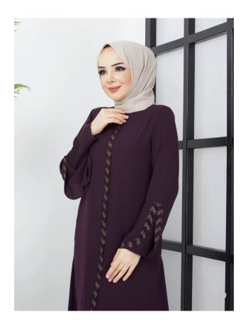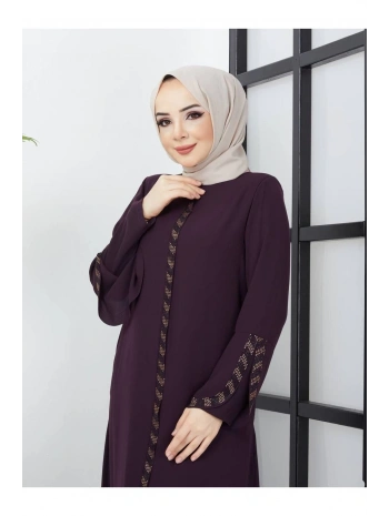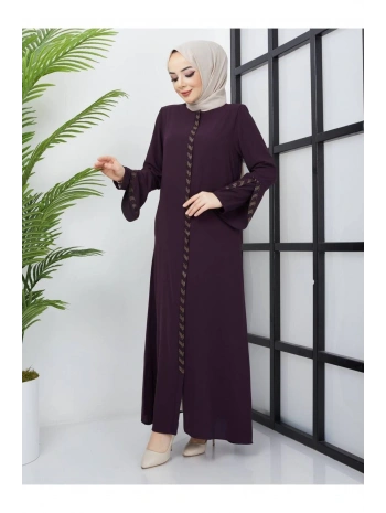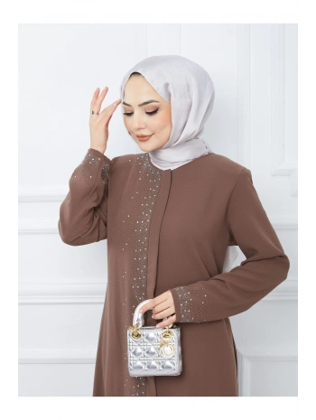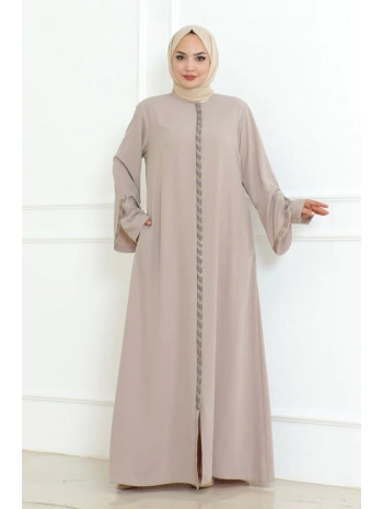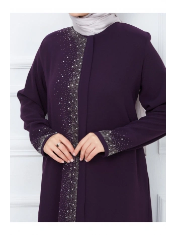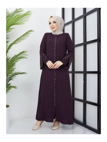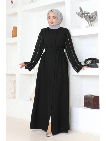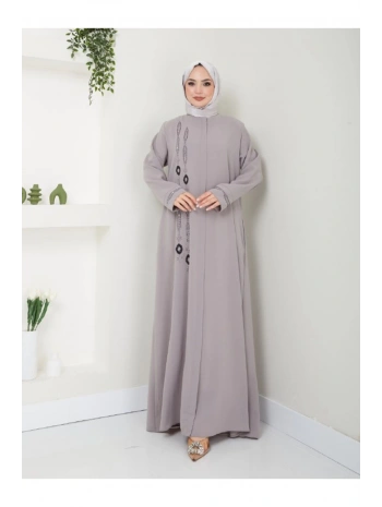 Ön Ve Kol Taş Detaylı Büyük Beden Ferace