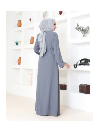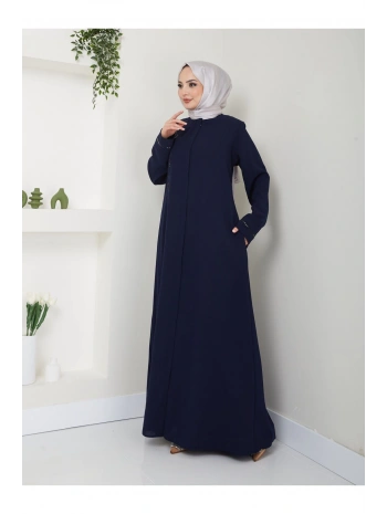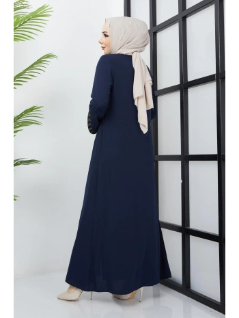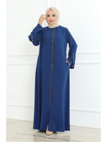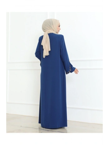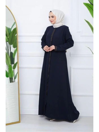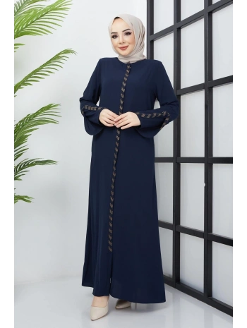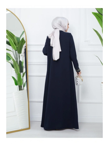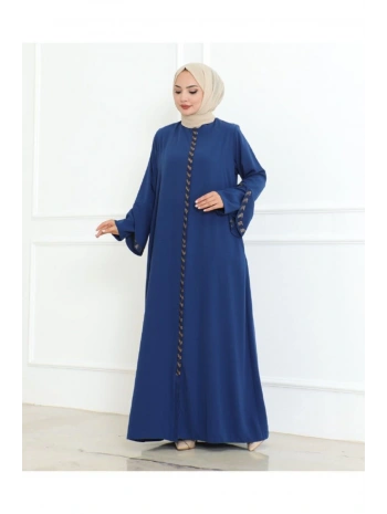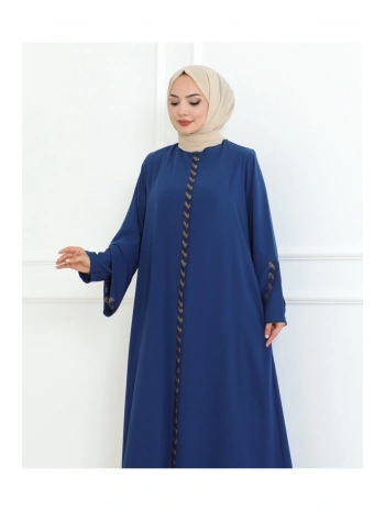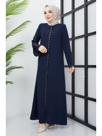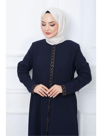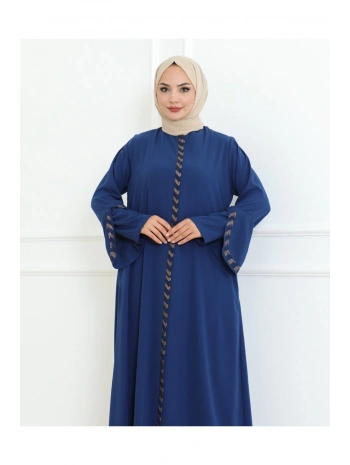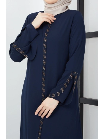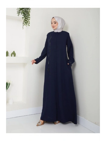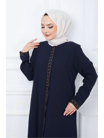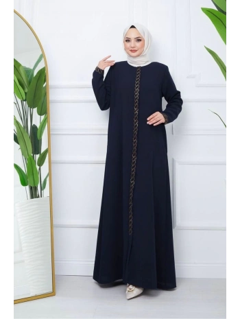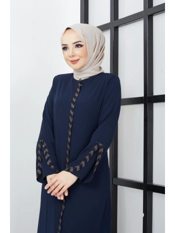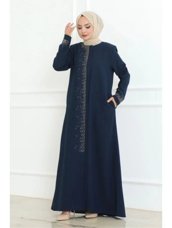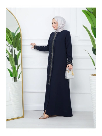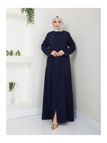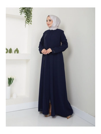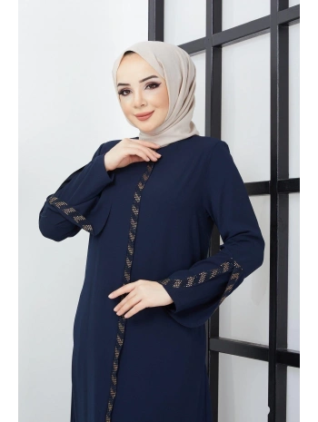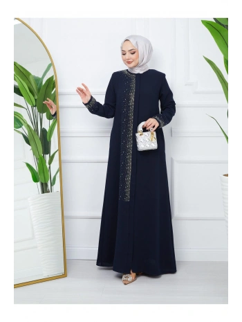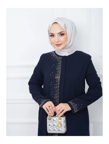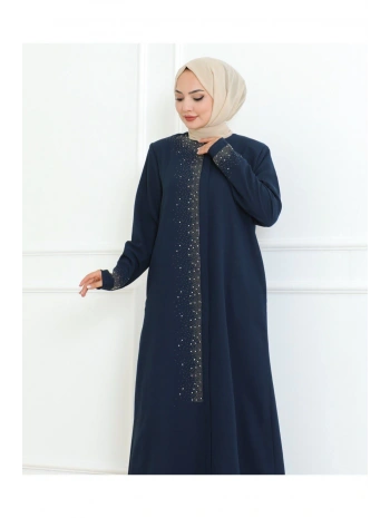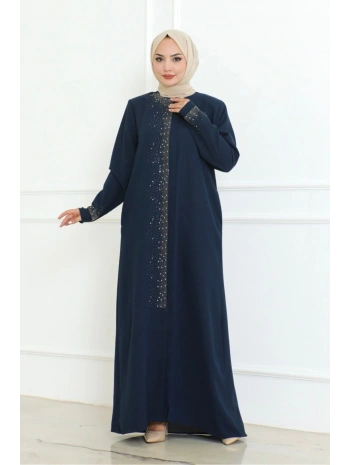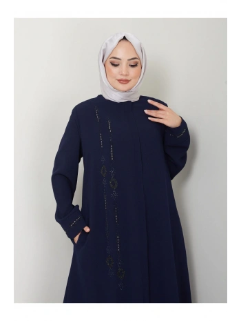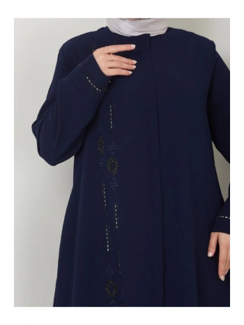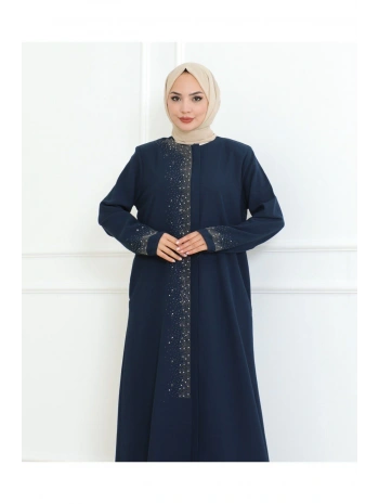Büyük Beden Taş Detaylı Lacivert Ferace SS2030