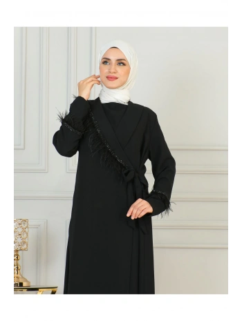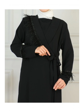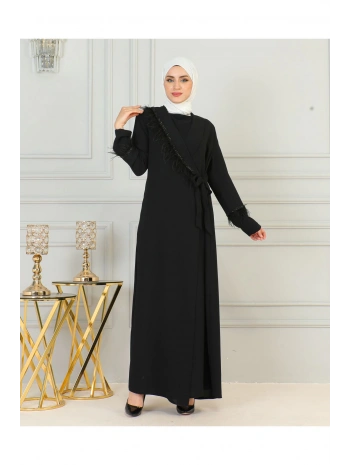 Taş Ve Püskül Detaylı Ferace- Sİyah