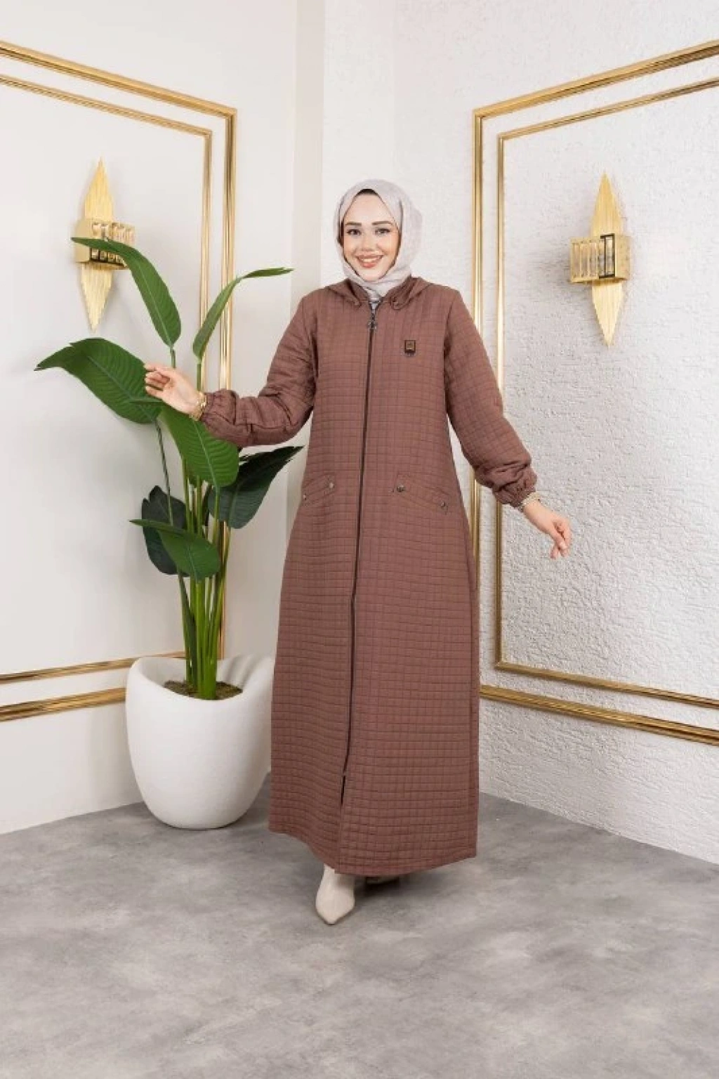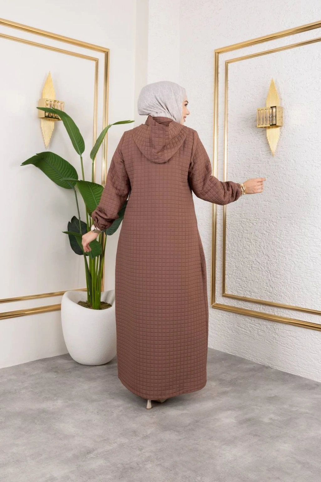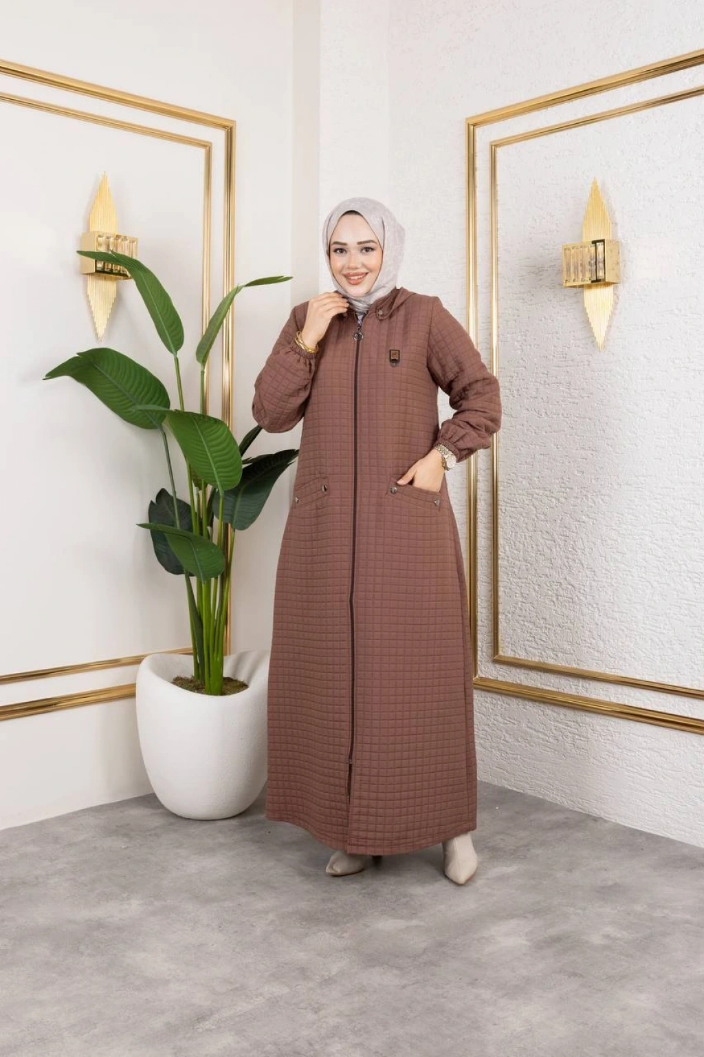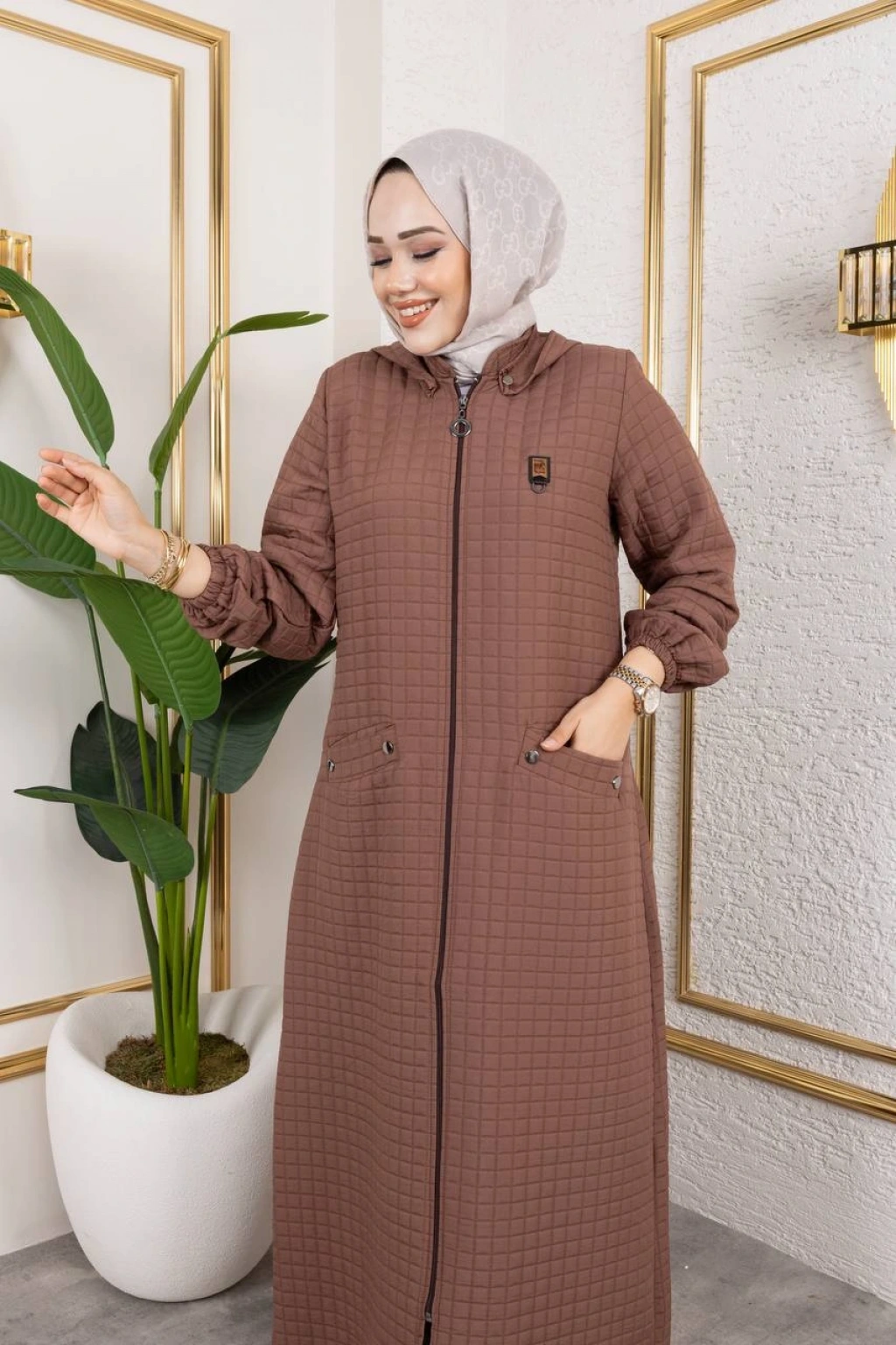 Kapüşonlu Kapitone Mont / Kahve-M104