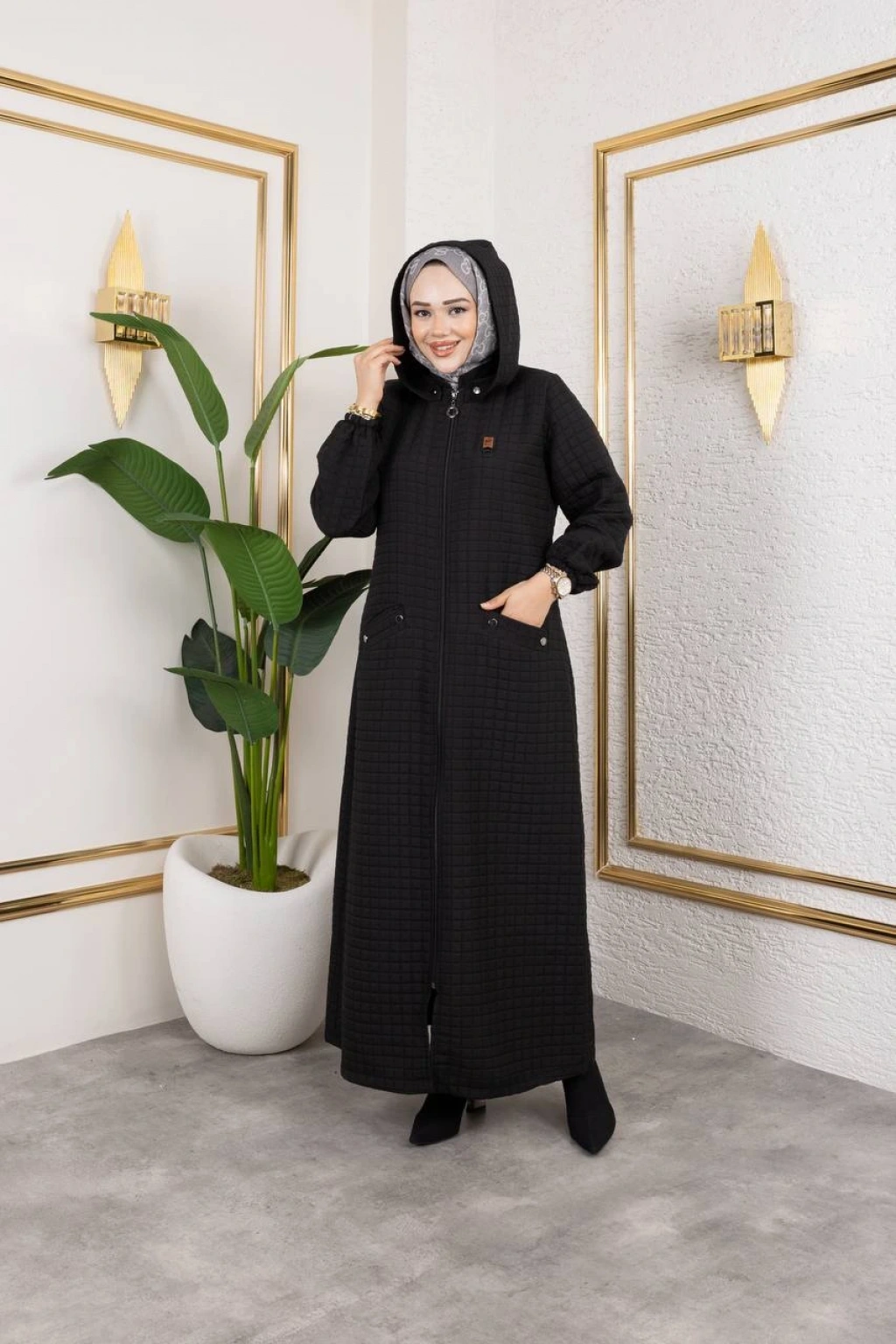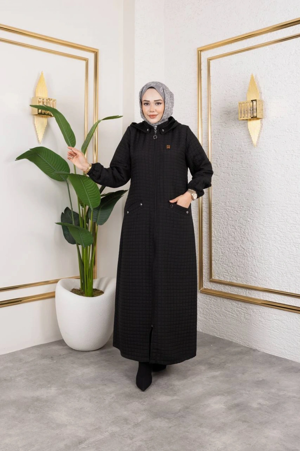 Kapüşonlu Kapitone Mont / Siyah-M104