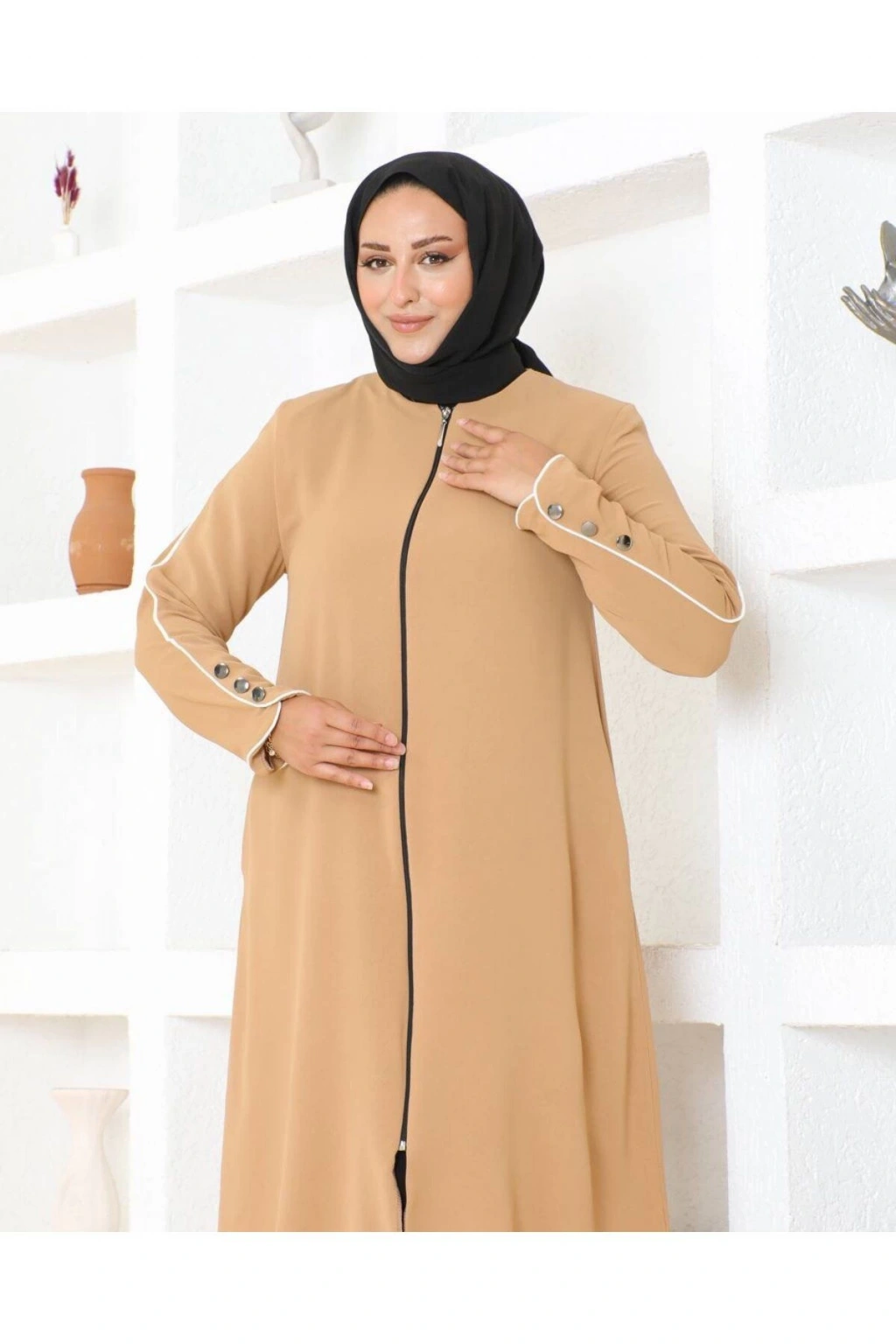Kol Düğme Detaylı Linda Kap -Camel