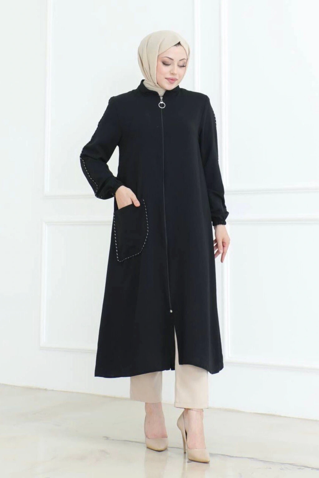 Uzun kollu tasarımı ile günün her saati rahatlık ve şıklığı bir arada sunar; Her yaş grubuna hitap eden geniş beden skalası ile herkes için uygun bir seçimdir; Pratik kullanım için tasarlanmış fermuarlı yapısı, kolay giyip çıkarmayı mümkün kılar; Hem gündüz hem de gece kullanımına uygun, çok yönlü bir parça olarak gardırobunuzda yerini alır; Sade ve şık görünümüyle dikkat çeken düz deseni, zamansız bir tarz yaratmanızı sağlar; Tesettür giyim koleksiyonunun zarif bir parçası olarak, modern ve estetik çizgiler taşır; Denim kumaşın dayanıklılığı ve ince yapısıyla konforlu bir kullanım sunarken, uzun ömürlüdür;