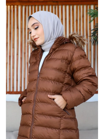 İçi Kürklü Kapüşonlu Mont / Haki - M0103