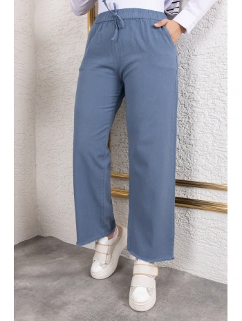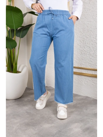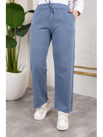 Beli Lastikli Keten Pantolon - Açık Mavi / A0104