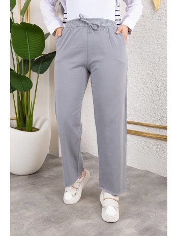 Beli Lastikli Kanvas Pantolon - Gri / A0104