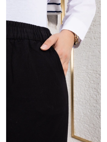 Beli Lastikli Kanvas Pantolon - Siyah / A0104