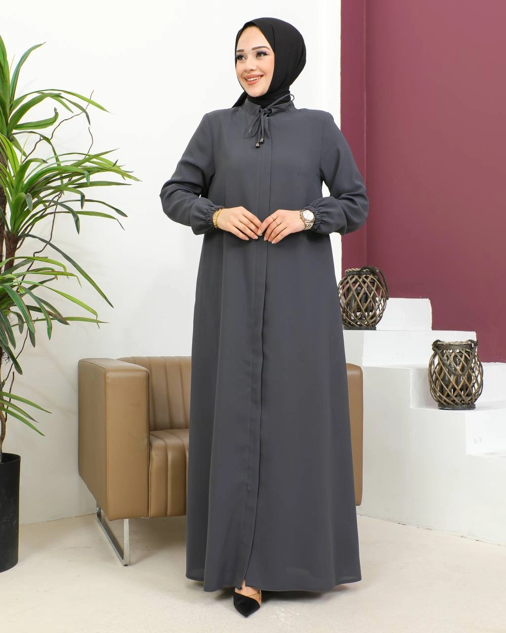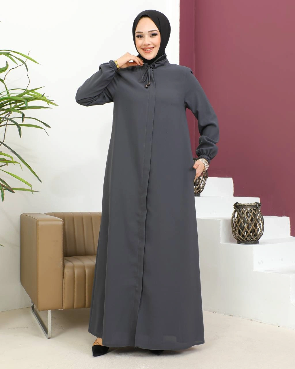 Salaş Kesim Tesettür Ferace / Antrasit - F120