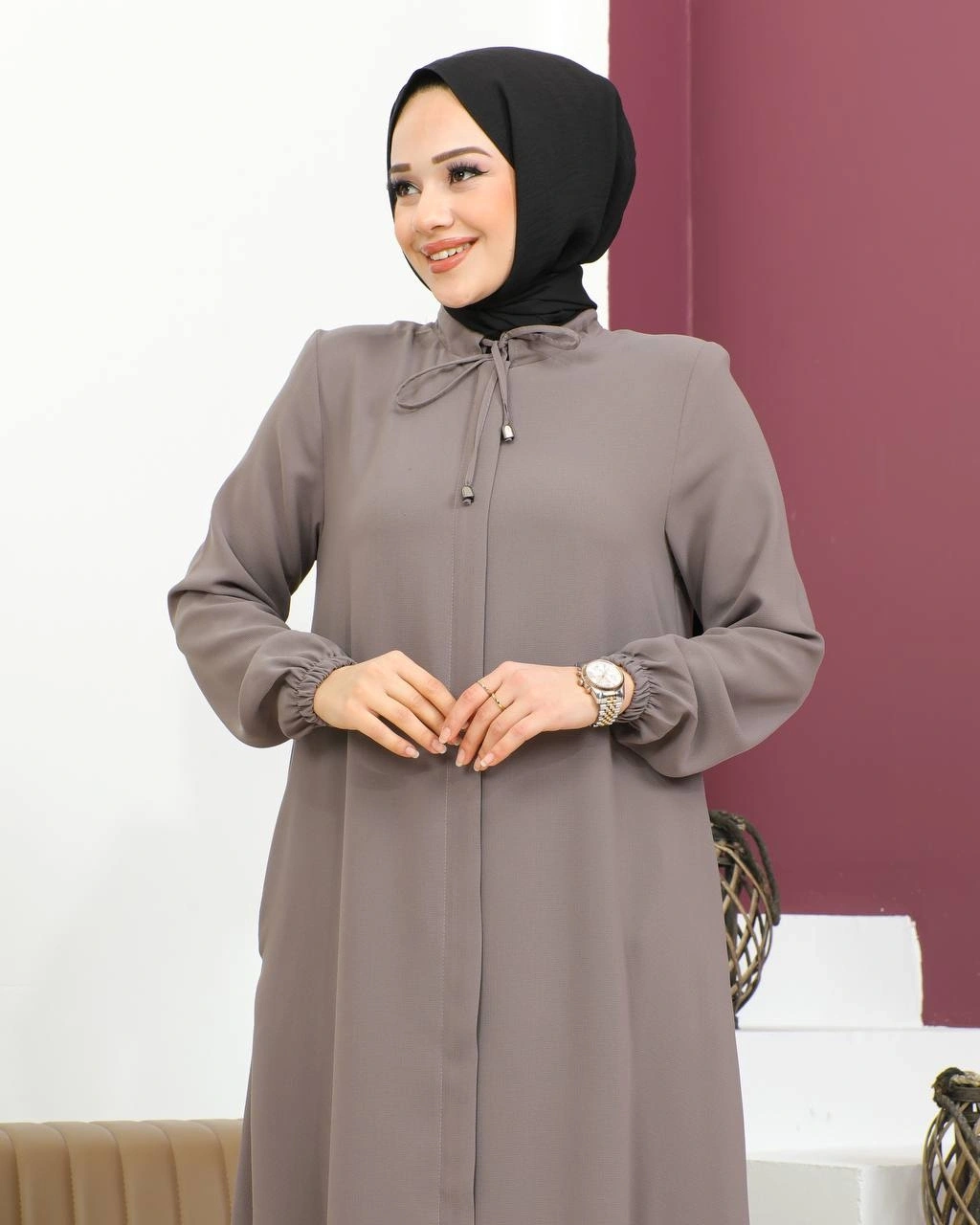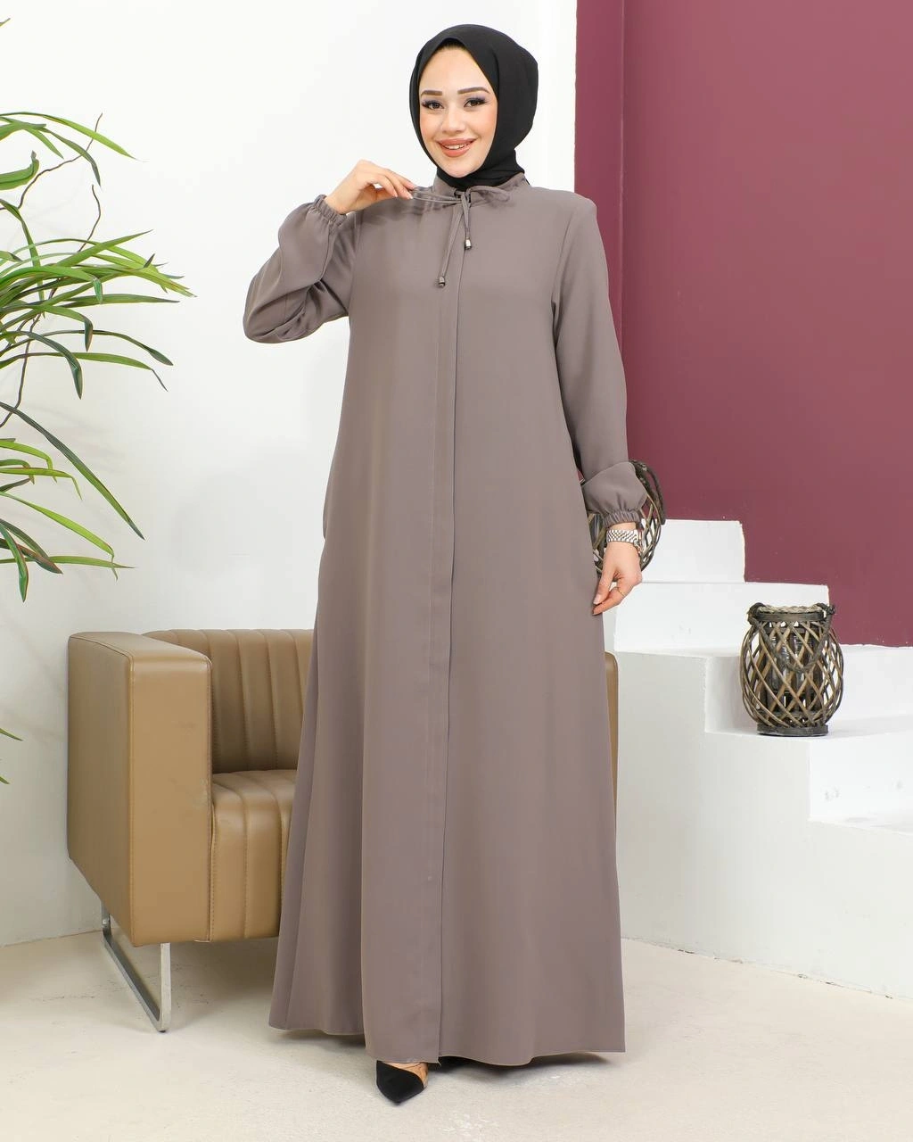 Salaş Kesim Tesettür Ferace / Vizon - F120
