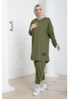 Aerobin Kumaş Uzun İkili Takım - Haki / T0110