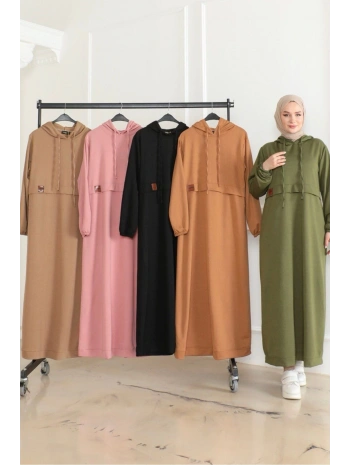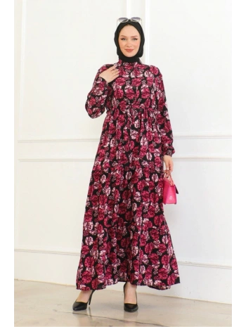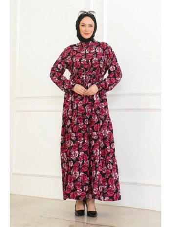 Çiçek Desenli Bağlamalı Viskon Elbise - Gül Kurusu