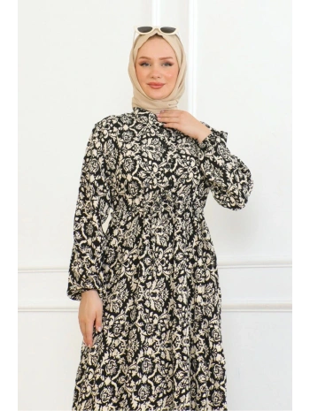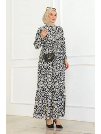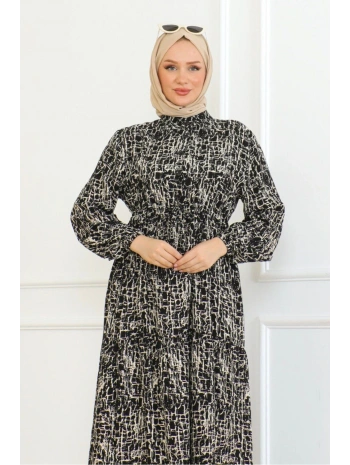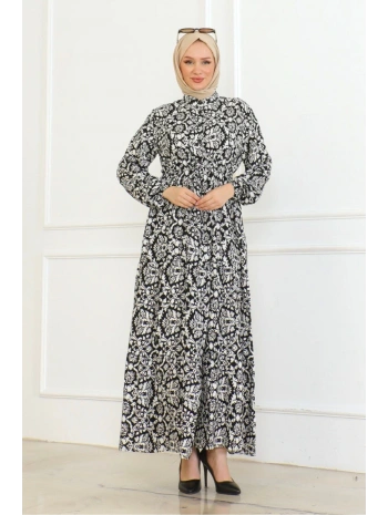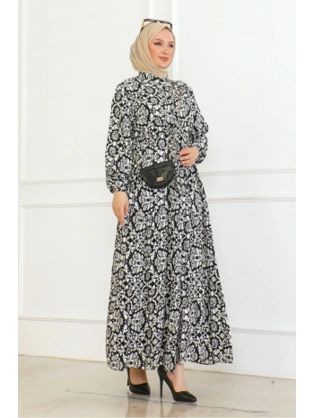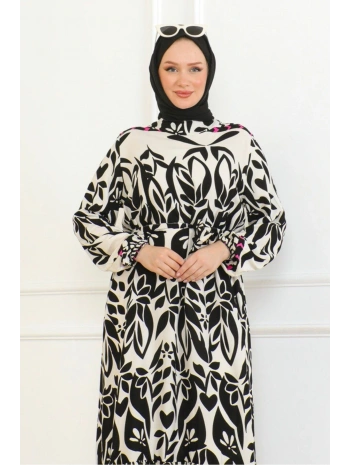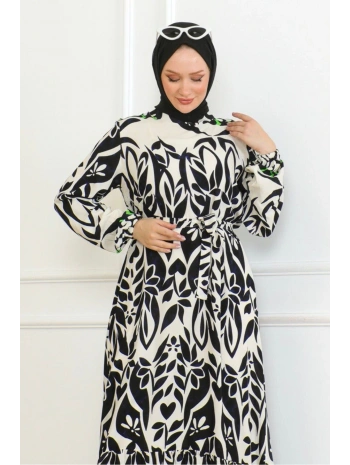 Viskon Elbise Bağlamalı - Siyah/Beyaz